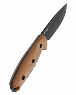 Der ca. 12,7 cm lange Micarta-Griff des Messers bietet einen soliden und rutschfesten Halt unter allen Bedingungen. Für eine schnelle Anpassung an spezifische Bedürfnisse oder Vorlieben lassen sich die Griffschalen einfach abnehmen. Zudem bieten Jimping und Choil auf der Klinge Halt und Kontrolle bei filigranen Aufgaben.