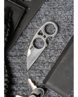 Dieses Halsmesser hat eine ca. 5,8 cm lange Sheepfoot-Klinge und einen einzigartigen Griff. Der Griff verfügt über zwei Fingerlöcher und jimpings, so dass Du es auf verschiedene Arten halten kannst und es gleichzeitig ergonomisch und komfortabel bleibt.