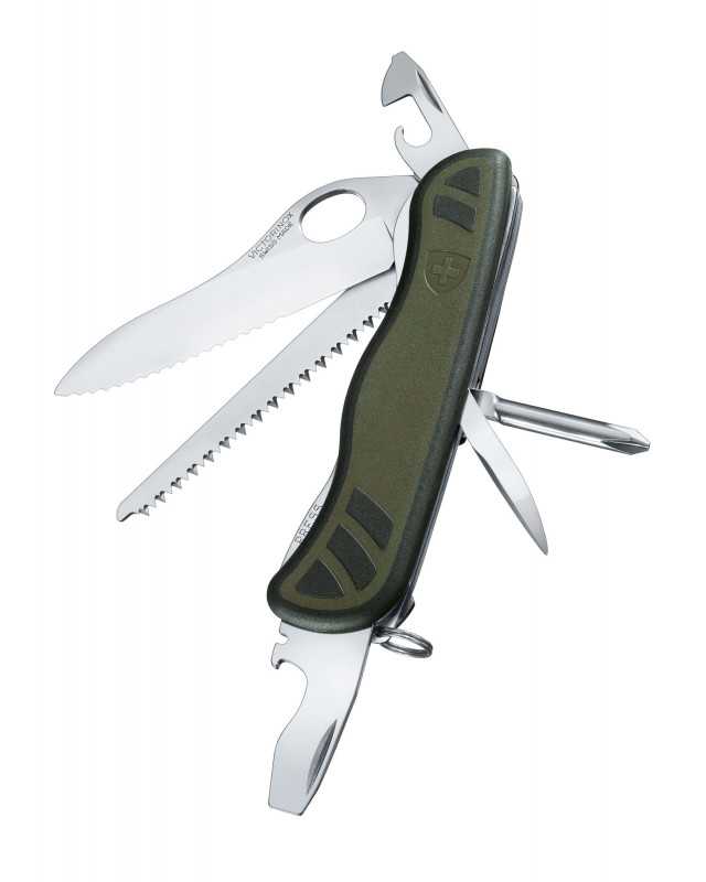 Dank der Zwei-Komponentenschalen liegt das Schweizer Soldatenmesser immer sicher undoptimal in der Hand. Die grosse Klinge lässt sich einhändig öffnen und wirddurch einen Liner-Lock gesichert. 10 Funktionen runden das Erscheinungsbilddes Schweizer Soldatenmessers ab.
